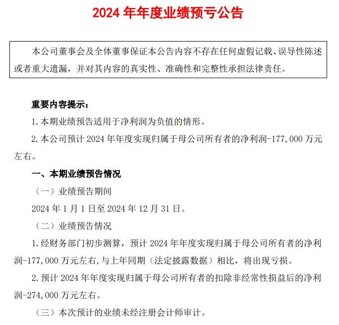 由于表现不及预期,江淮汽车2024年业绩出现“滑铁卢”,公司预计2024年实现归母净利润-17.7亿元左右,同比由盈转亏;预计扣非后净利润-27.4亿元左右。
